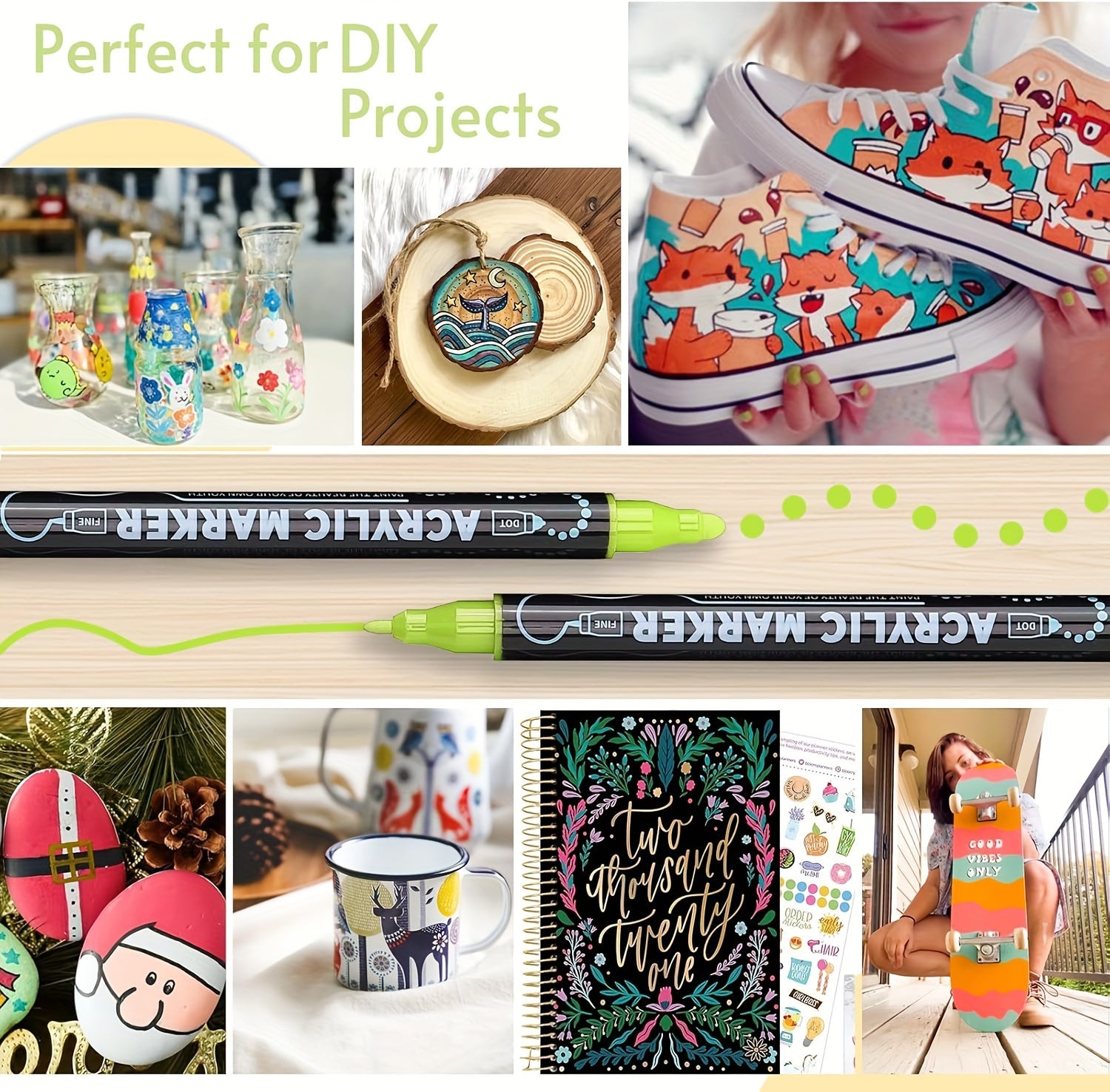 36 Colors Dual Tip Acrylic Pens Markers, Double Tip Premium Acrylic Markers, Acrylic Markers for Wood, Rock Painting, Glass, Canvas, Stone, DIY Crafts Making Art Supplies